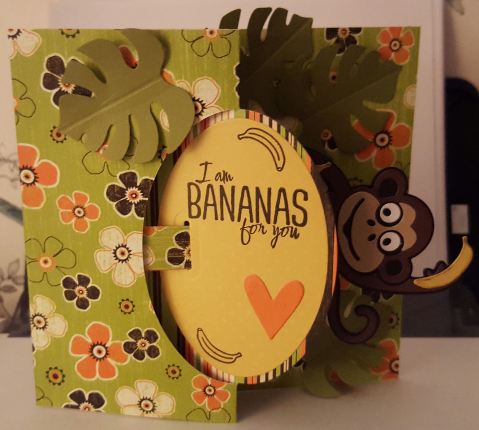 Materials Used : Jinks Karen Burniston, Oval Pull card Karen Burniston, Woodware Jungle Lead Punch, Bo Bunny paper (very old), Cheeky Monkey Clear Stamp set Karen Burniston.